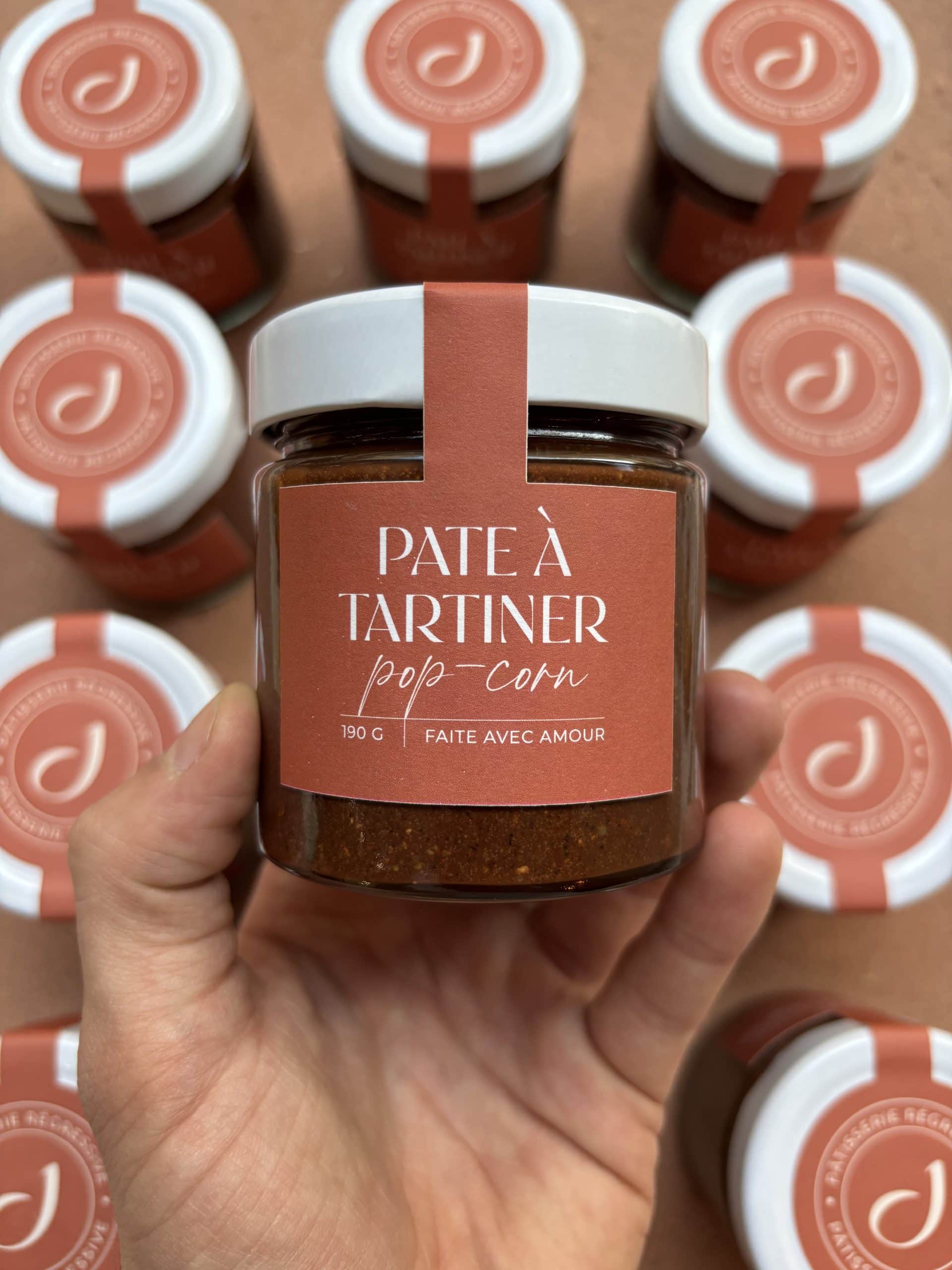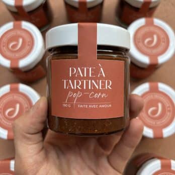Notre pâte à tartiner est composée d’un assemblage de chocolat au lait et noir de chez Nicolas Berger, d’un praliné à la noisette du Gers cultivé par la Maison Carayon et de pop-corn concassé. La gourmandise du petit déjeuner ou du goûter.