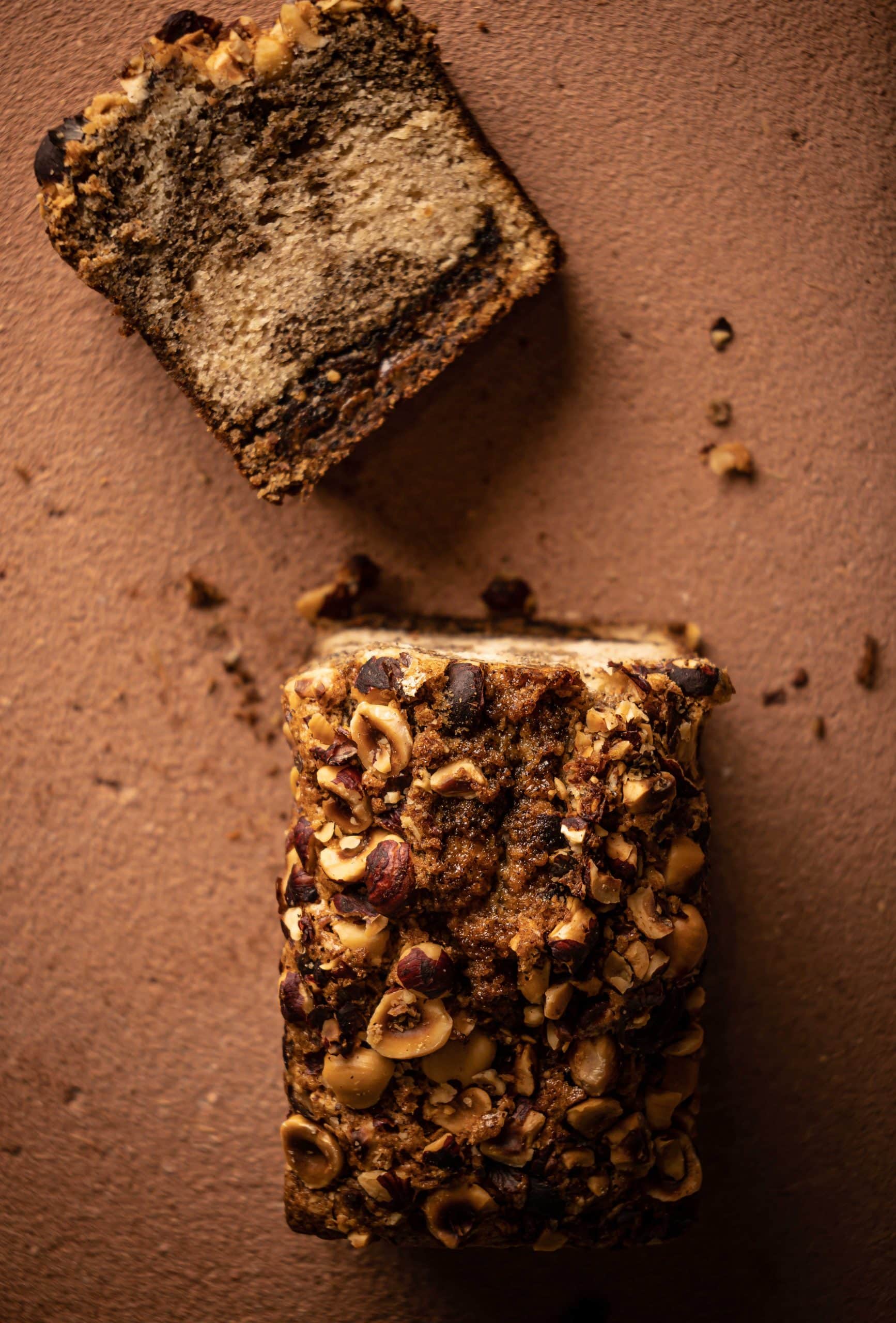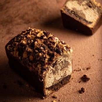 Un cake moelleux et réconfortant, marbré d’une base au café et une aux noisettes